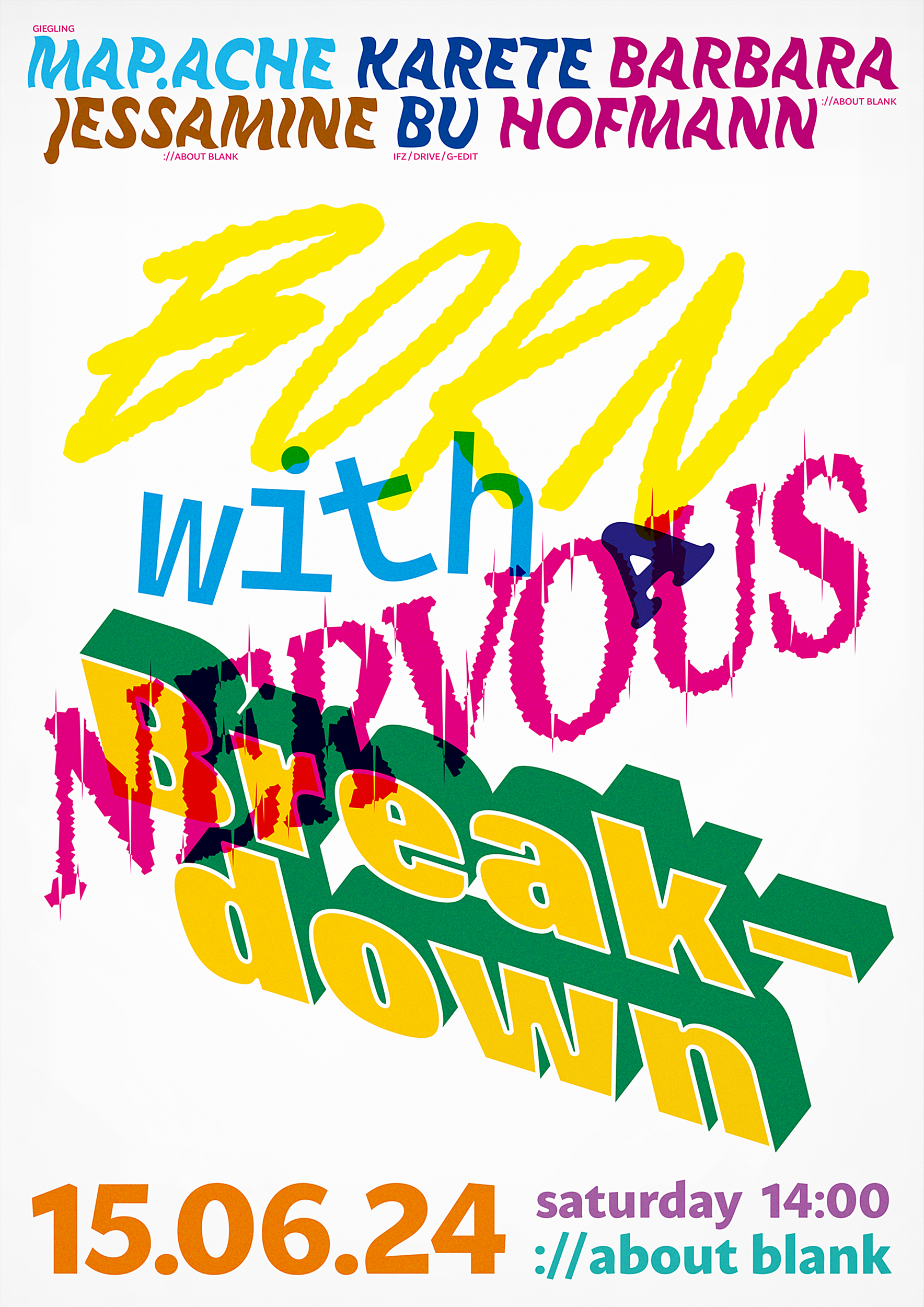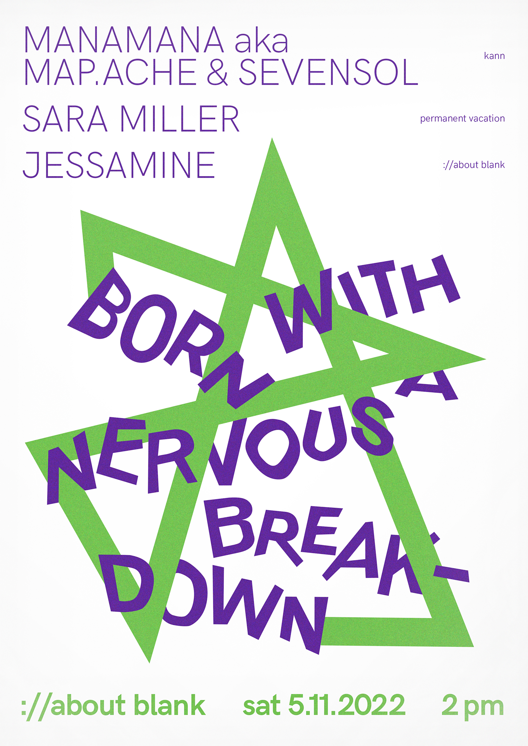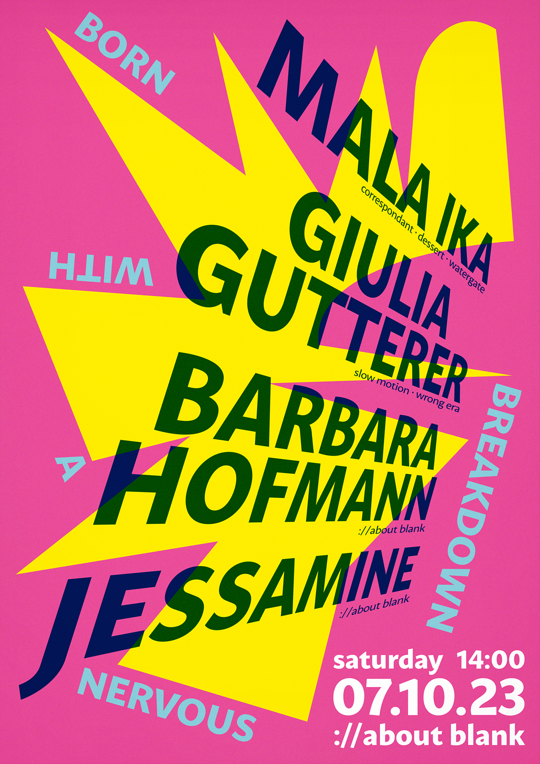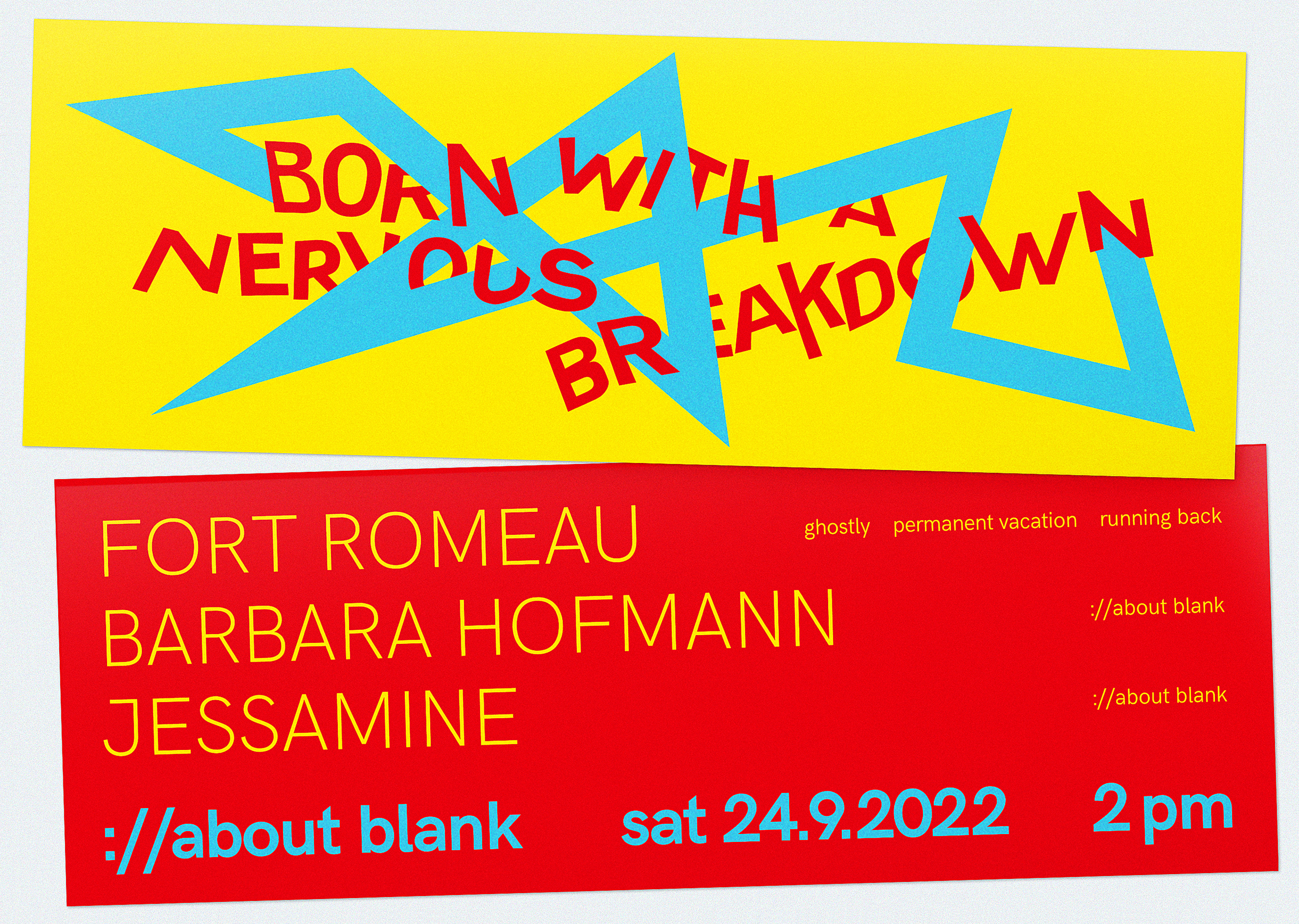 … für ://about blank Berlin. Gestaltung mehrerer Posterserien und Flyer für die Reihe Born With a Nervous Breakdown.